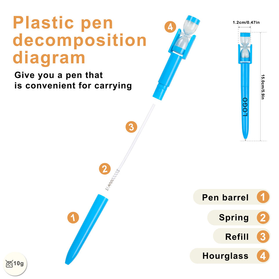 Nombre del producto:Bolígrafo de Plástico con Diseño de Reloj de Arena Personalizado y Divertido