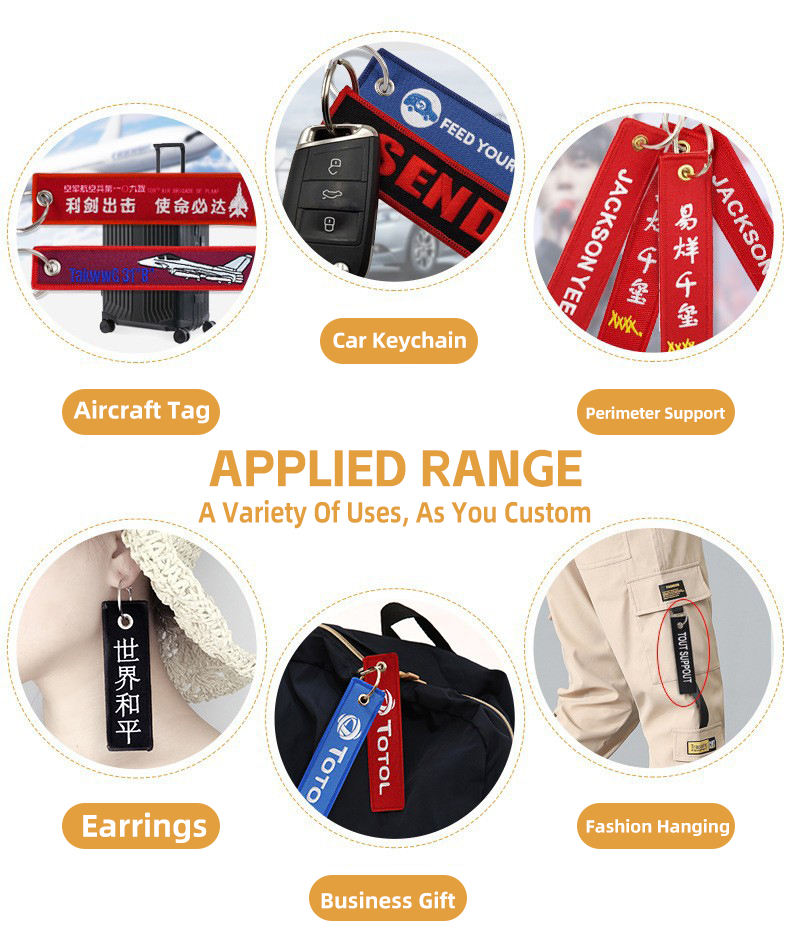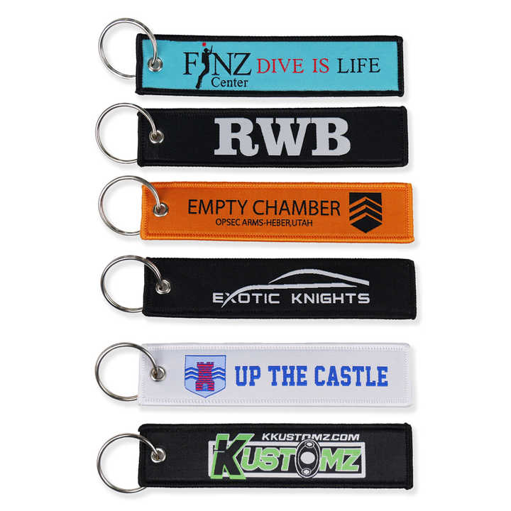 Llavero personalizado con logotipo de letra bordada, llavero de marca para quitar etiquetas de tela, llaveros, llavero tejido bordado