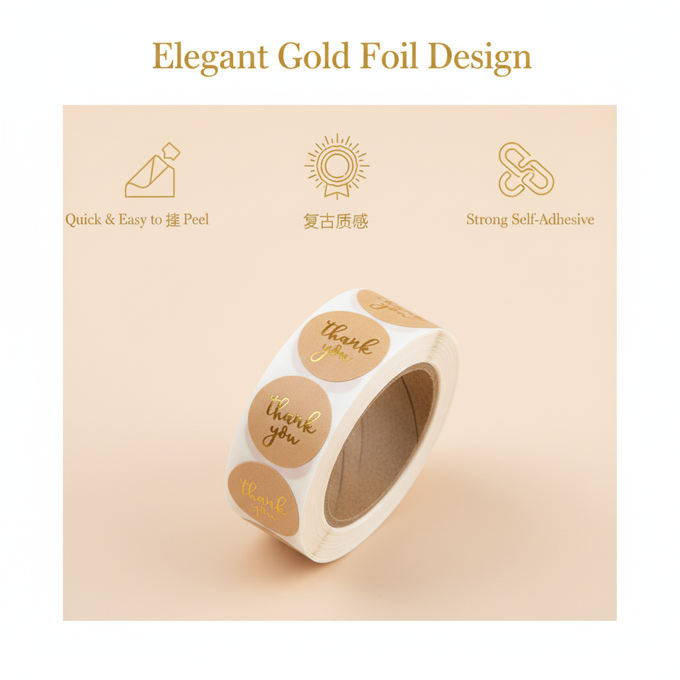 Etiquetas Adhesivas Personalizadas para Envasado de Alimentos, Impresión de Etiquetas, Fáciles de Remover, Resistentes al Agua, Papel PLA, Adhesivo, Lámina Dorada