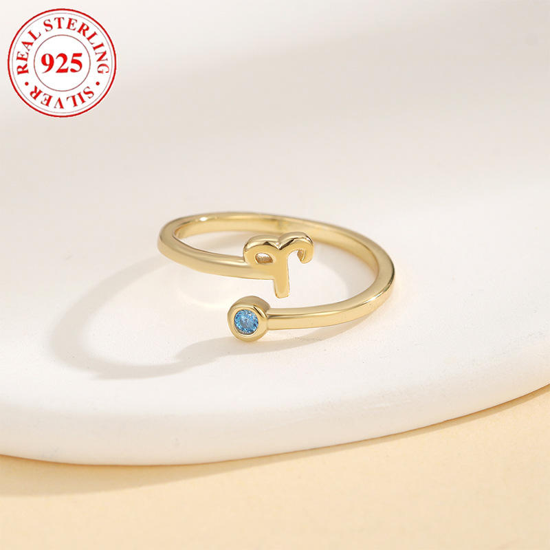 Joyería personalizada 18K chapado en oro plata esterlina 925 piedra de nacimiento colorida anillo del dedo del pie del zodiaco para mujeres niñas