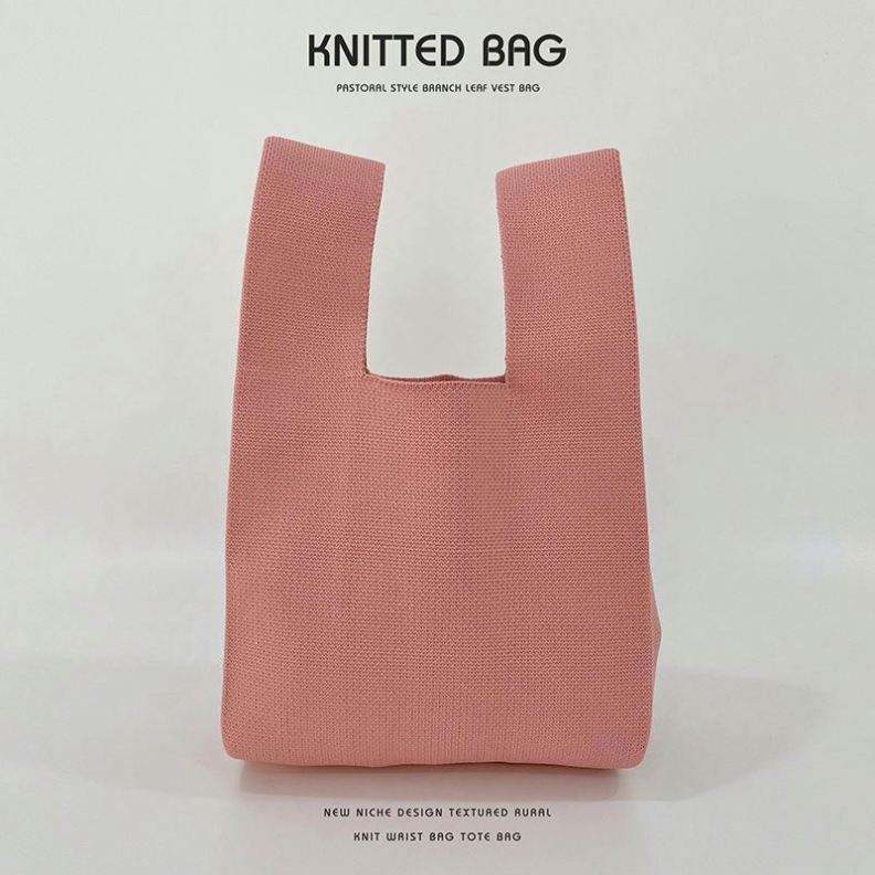 Bolso de Mano Personalizado de Punto Liso, Bolso Pequeño con Nudo en la Muñeca, Bolso Tote de Ganchillo Sólido para Mujer