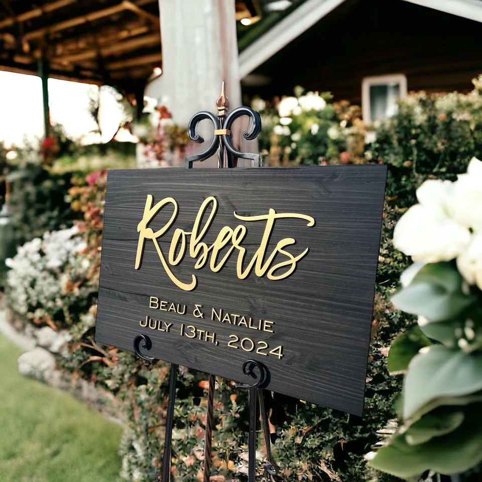 Letrero de Bienvenida de Madera Personalizado de Lujo Rústico para Boda con el Apellido en 3D para Novios
