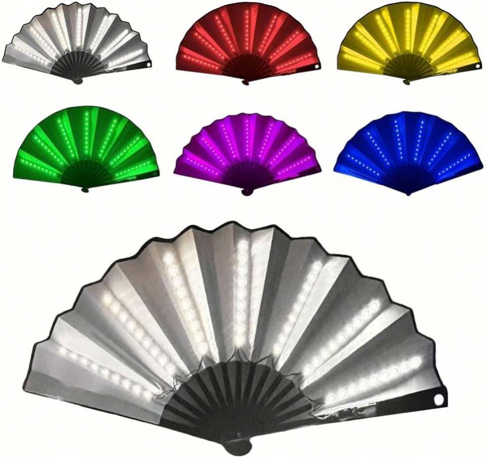 Abanico de Mano Plegable de Bambú con Luz LED, Personalizado con la Bandera del Orgullo Trans
