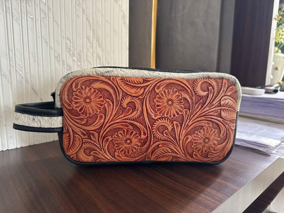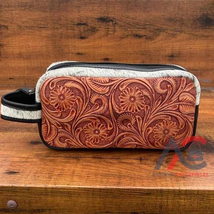 Product Name:Hair On Tooled Leather Cosmetic Pouch