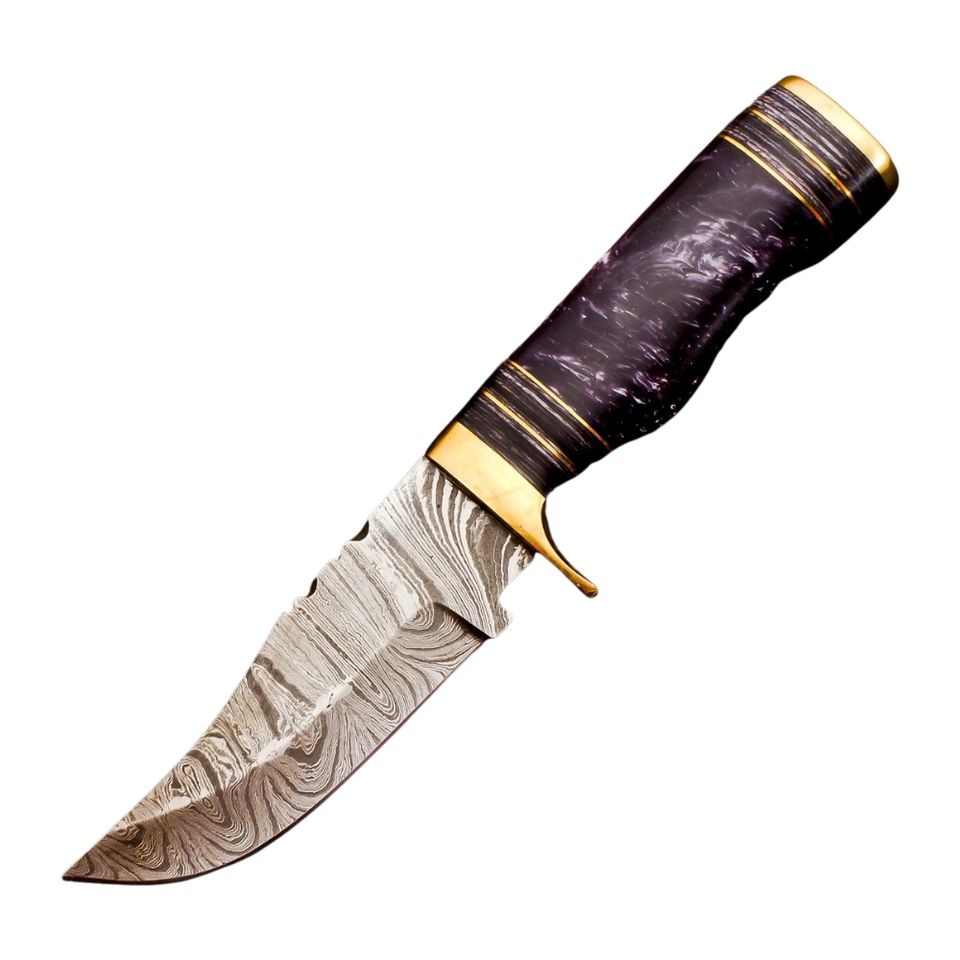 Cuchillo de Damasco personalizado, cuchillo de caza de acero forjado de Damasco con mango de madera dura, regalo para él, regalo de cuchillo al aire libre.