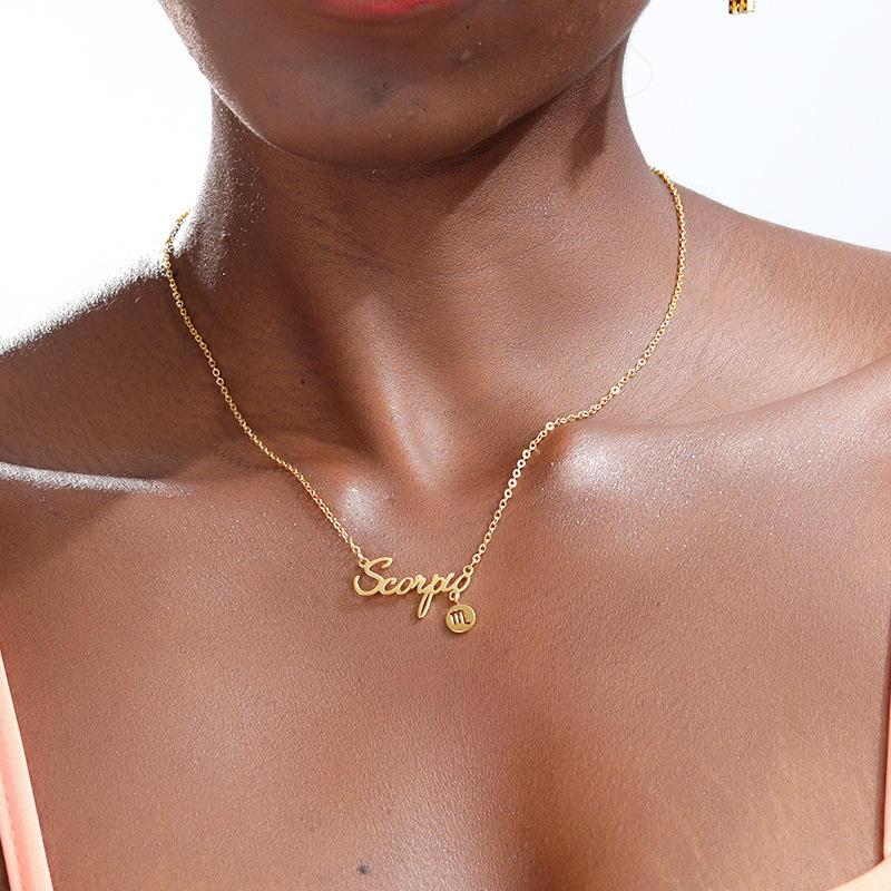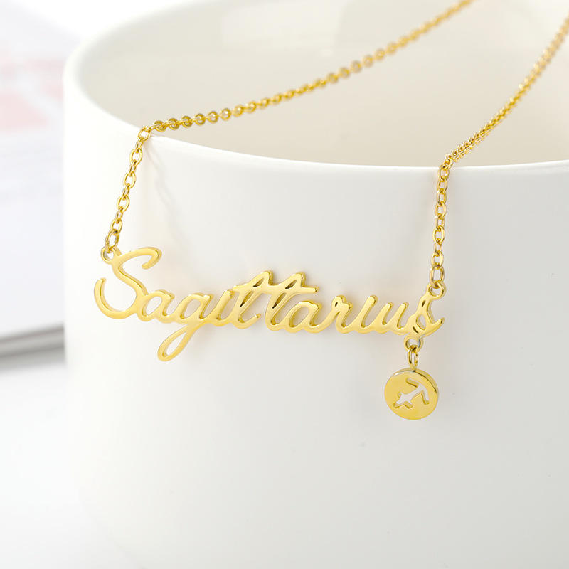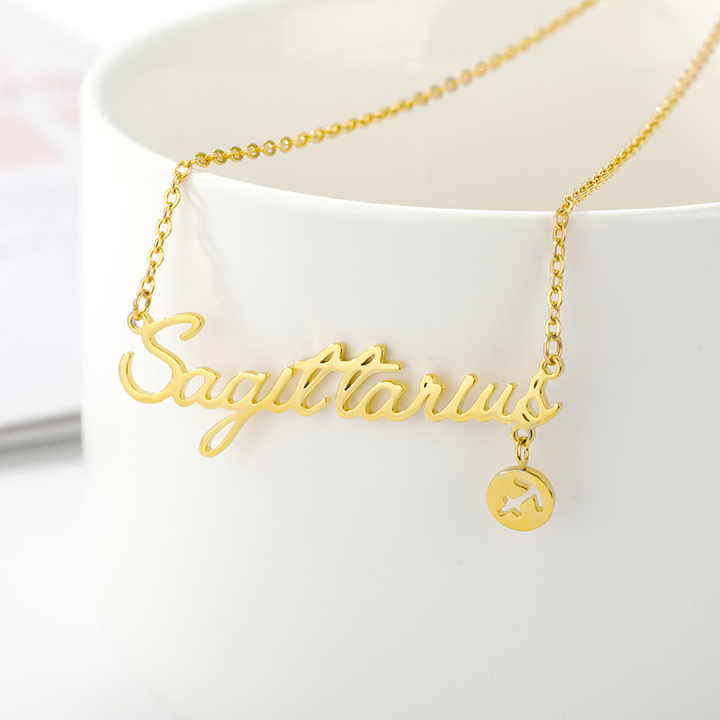 Diseño personalizado 12 signo del zodiaco horóscopo COLLAR COLGANTE de cadena de acero inoxidable para mujeres y hombres viene con bolsa de regalo
