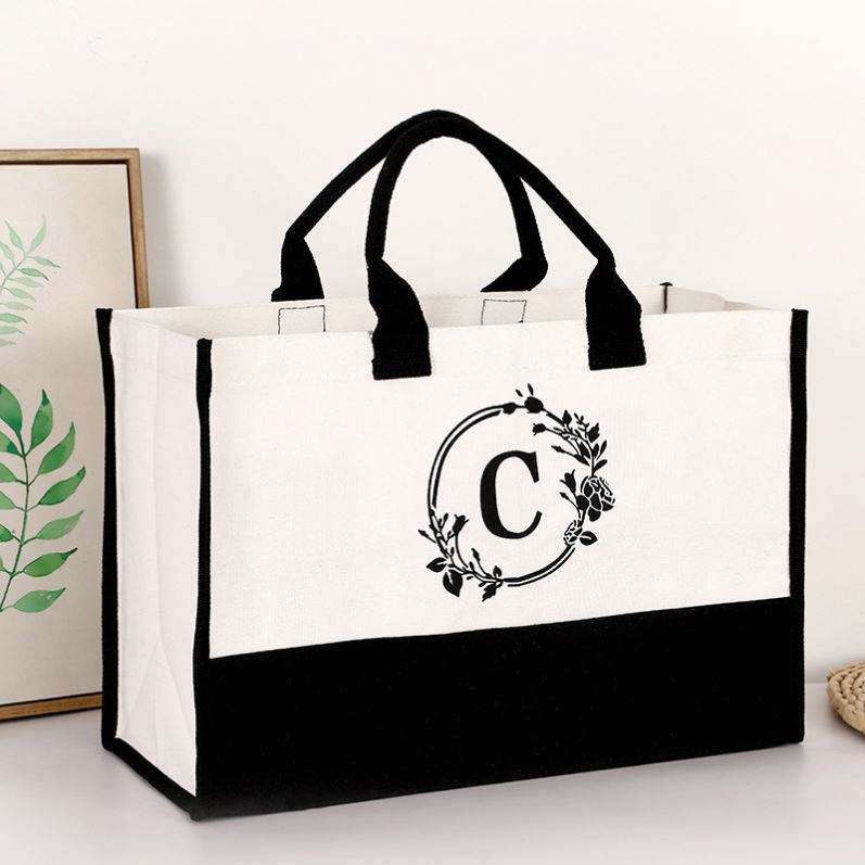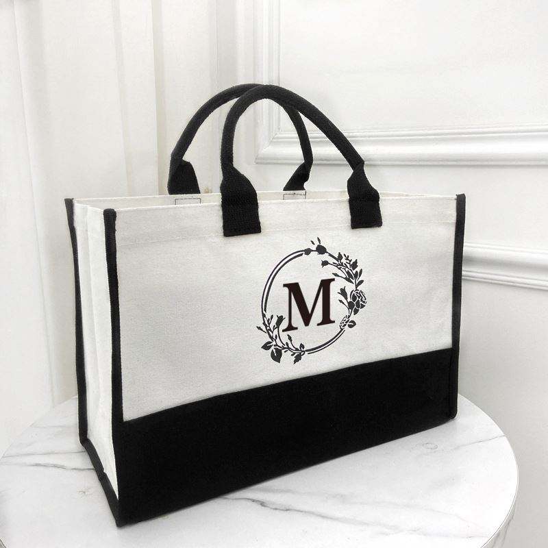 Bolsa de Mano de Lona con Diseño Personalizado y Monograma, Regalo de Boda para Mujer