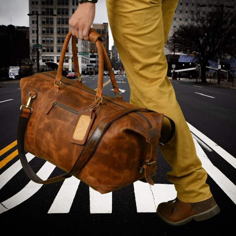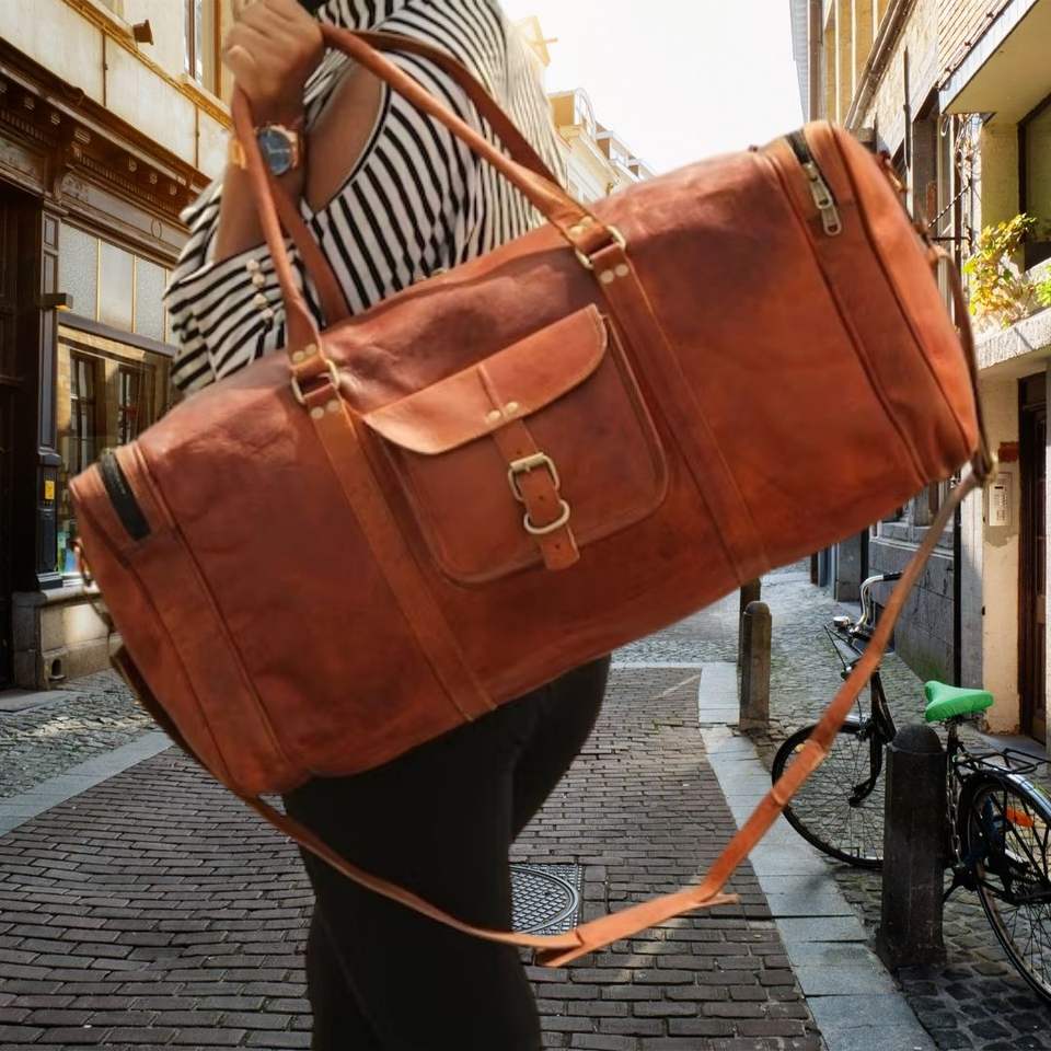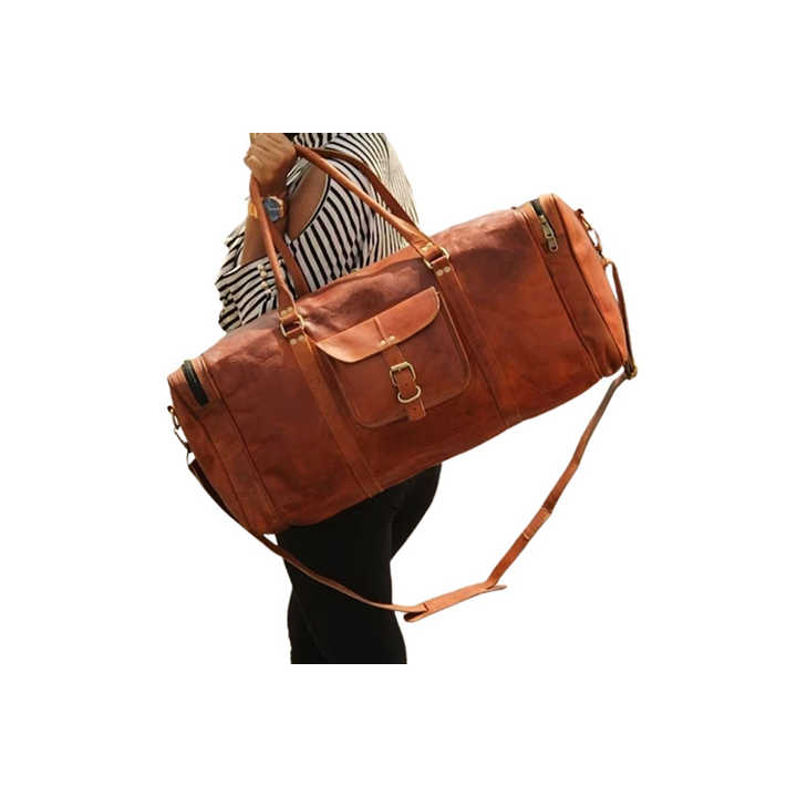 Bolsa de lona de viaje de tamaño de cabina de cuero Vintage unisex último diseño con cierre de cremallera precio bajo personalizado