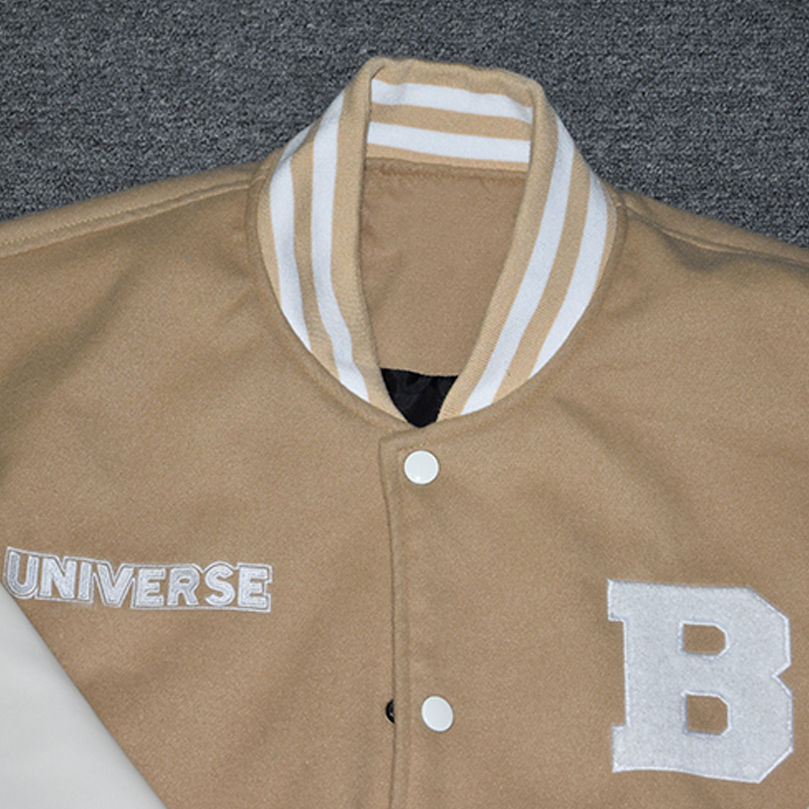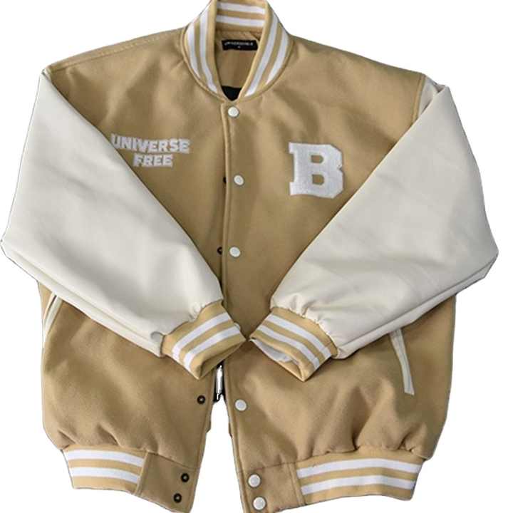 Personalizable College Bomber Jacket Plus Size Impermeable Invierno Lana Cuerpo Mangas de cuero Bordado Varsity Cremallera Algodón