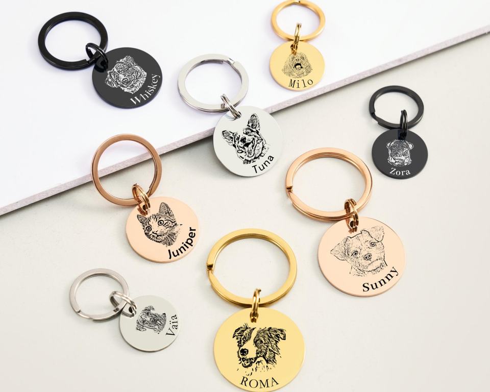 Llavero Conmemorativo Personalizado para Perros y Gatos con Grabado e Impresión, Cuero/Satén Resistente, Liberación Rápida, Excelente Regalo para Mascotas