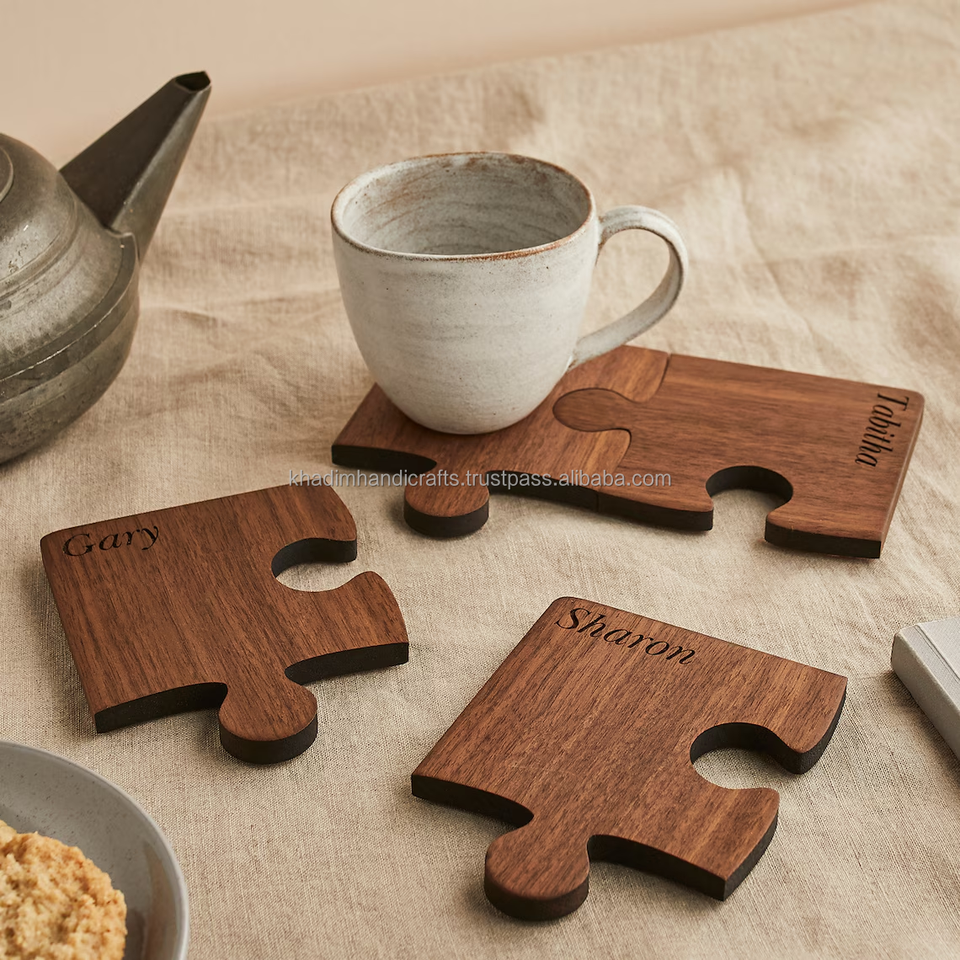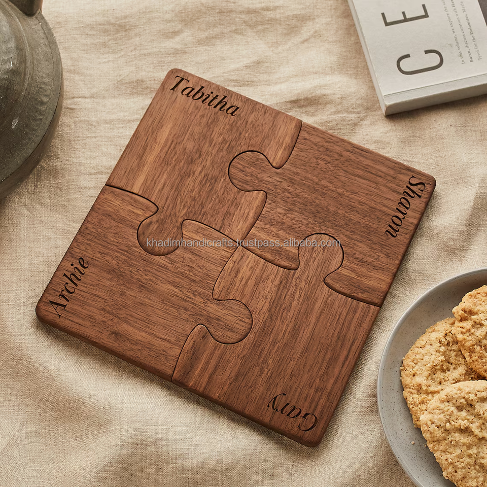 Juego de posavasos de rompecabezas personalizado de cuatro piezas hecho de madera y resina perfecto para uso personal y regalos