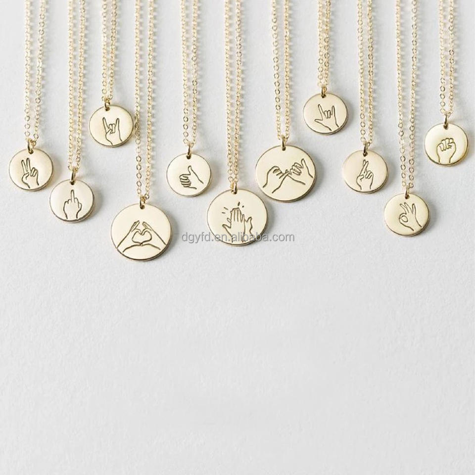 Collar de Acero Inoxidable con Grabado de Amistad Personalizado, Colgante de Disco Redondo de Oro con Gestos de Mano, Lenguaje de Señas Personalizado, Joyería