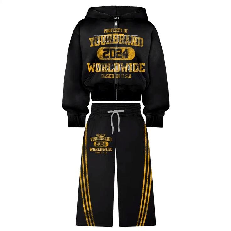Conjunto Deportivo Informal Personalizado con Cremallera Completa, Pantalones Anchos Unisex, Ropa Urbana, 100% Algodón, Agrega el Nombre de tu Marca, Diseños de Tops
