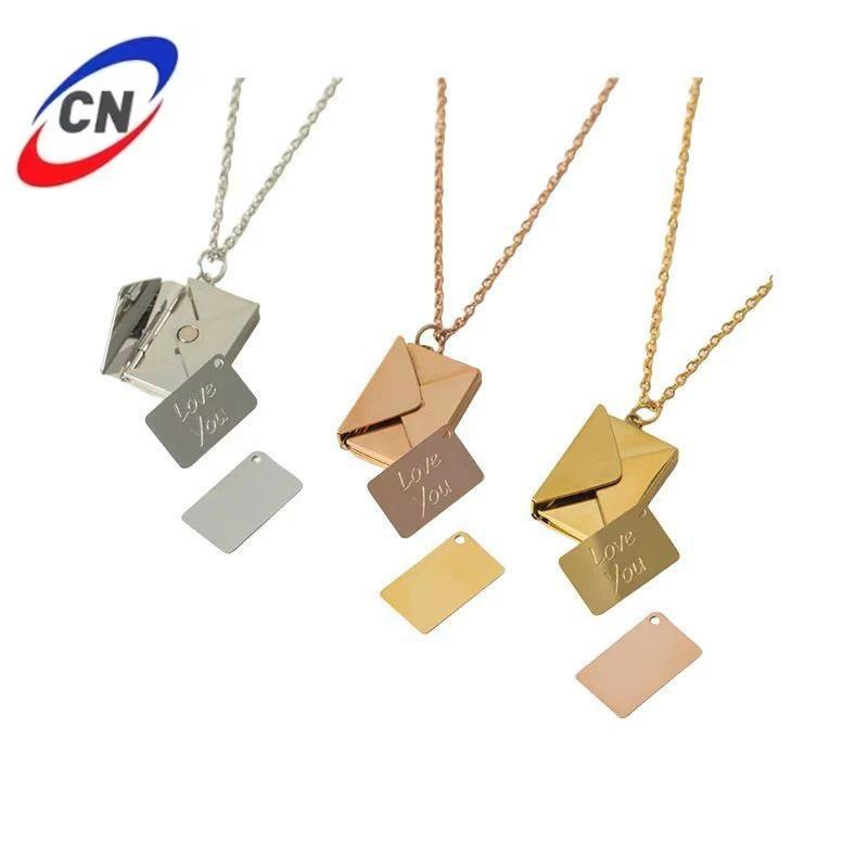 Collar con Colgante de Marco Geométrico Personalizado, Colgante de Acero Inoxidable Personalizado, Colgante con Forma de Sobre de Carta de Amor, Cadena de Serpiente, Regalo