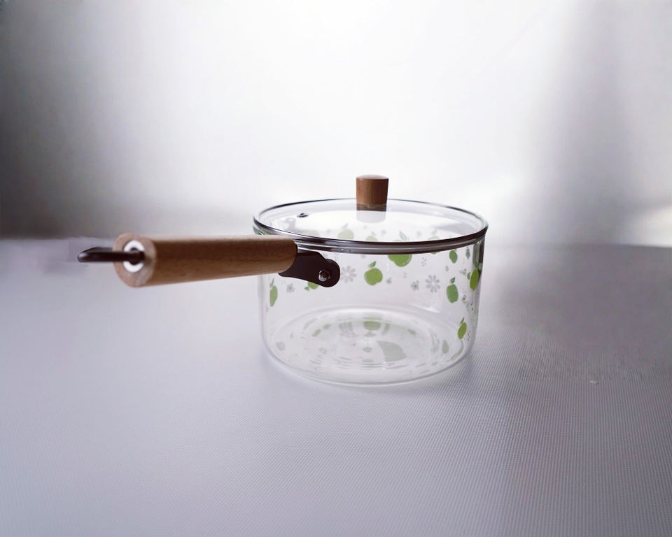 Olla de cocina de vidrio clásica personalizada con impresión de calcomanías para Cocina de Inducción nueva olla de stock para uso de regalo en el hogar cubierta incluida