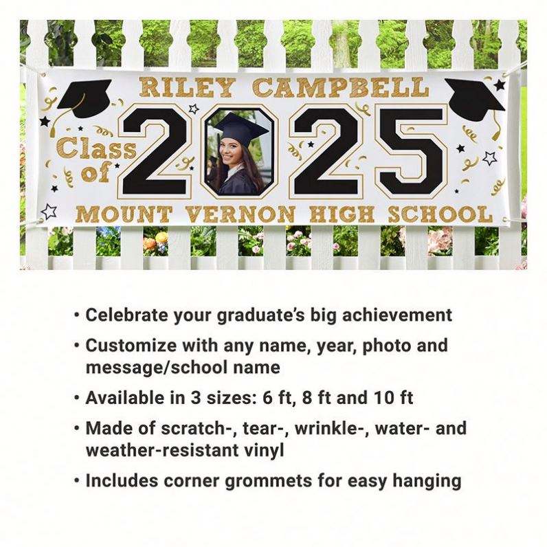 Pancarta de Vinilo Personalizada para Graduación 2025, Colores Escolares Personalizados, Letreros con Foto para Jardín, Regalos de Graduación, Telones de Fondo para Eventos