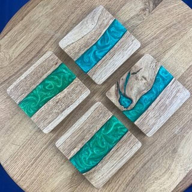 Posavasos de madera de resina artesanal personalizado estilo océano escena de playa grabado favores de la boda posavasos de madera personalizados