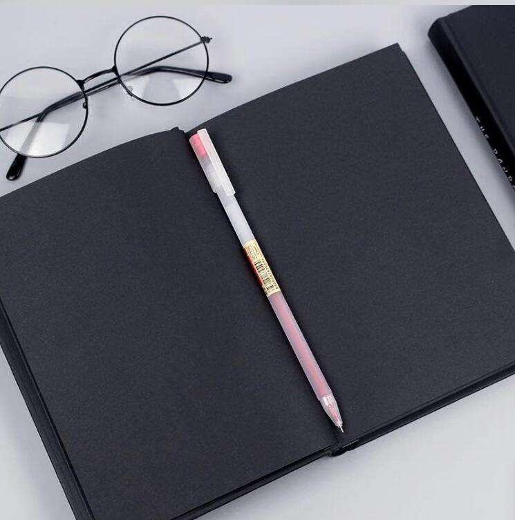 Cuaderno de papel negro puro de tapa dura personalizado, páginas interiores negras personalizadas, cuaderno de bocetos con bordes negros para dibujar con paquete de caja