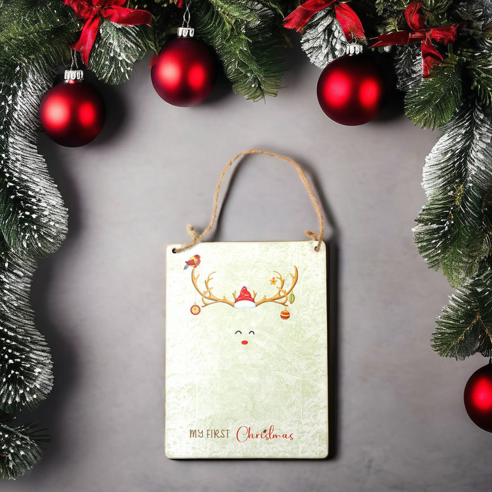 Adorno Navideño de Madera Personalizado de Alta Calidad con la Leyenda 'Feliz Grinchmas', Actividad de Huella de Pie y Mano del Bebé