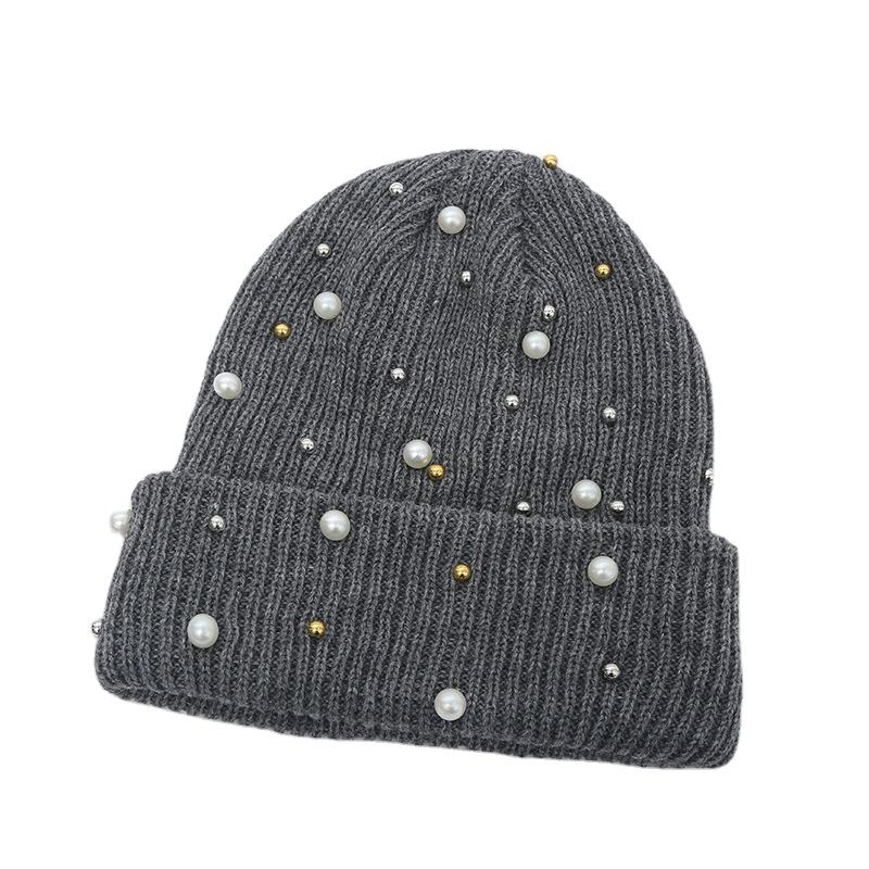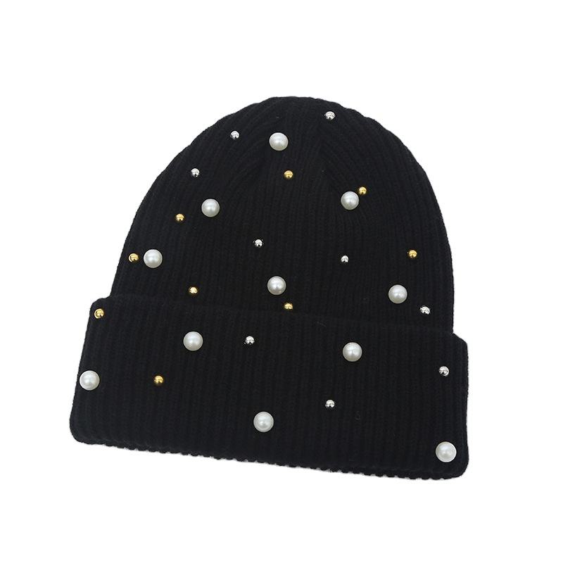 Gorro decorativo personalizado con perlas de imitación y diamantes de imitación, accesorio de moda para clima frío con personalidad única 2025