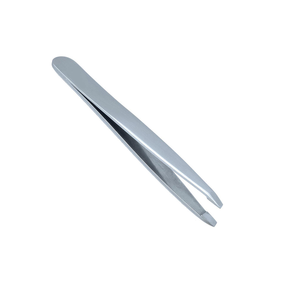 Pinzas de cejas con logotipo personalizado con punta inclinada y agarre antideslizante para un desplumado preciso