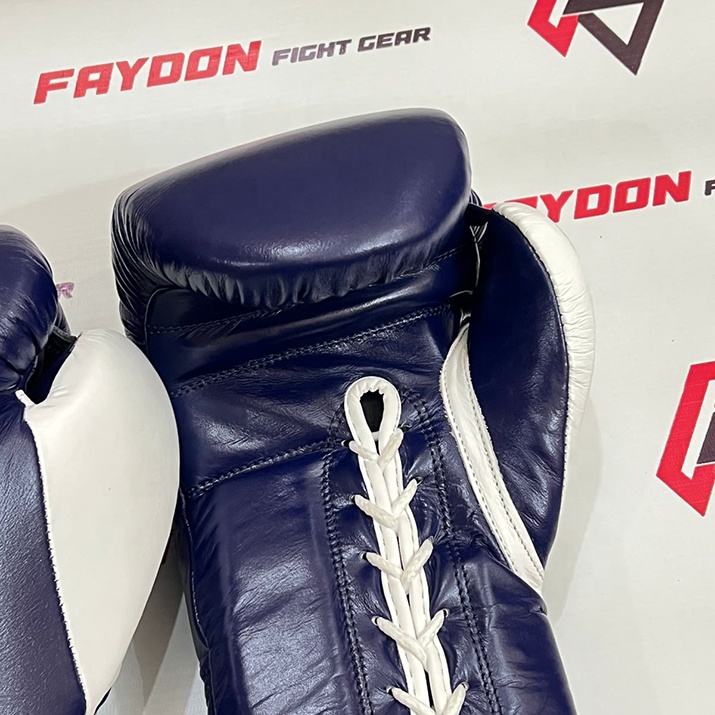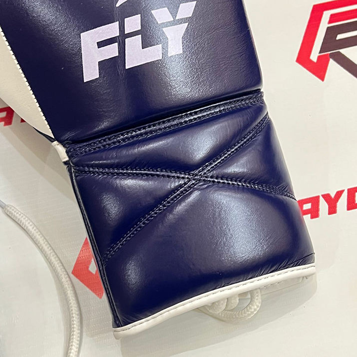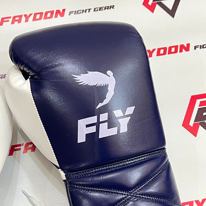 Guantes de Boxeo Personalizados con Logotipo FLY, de Cuero Azul y Blanco, para Entrenamiento de Kickboxing, Muay Thai y Artes Marciales Mixtas
