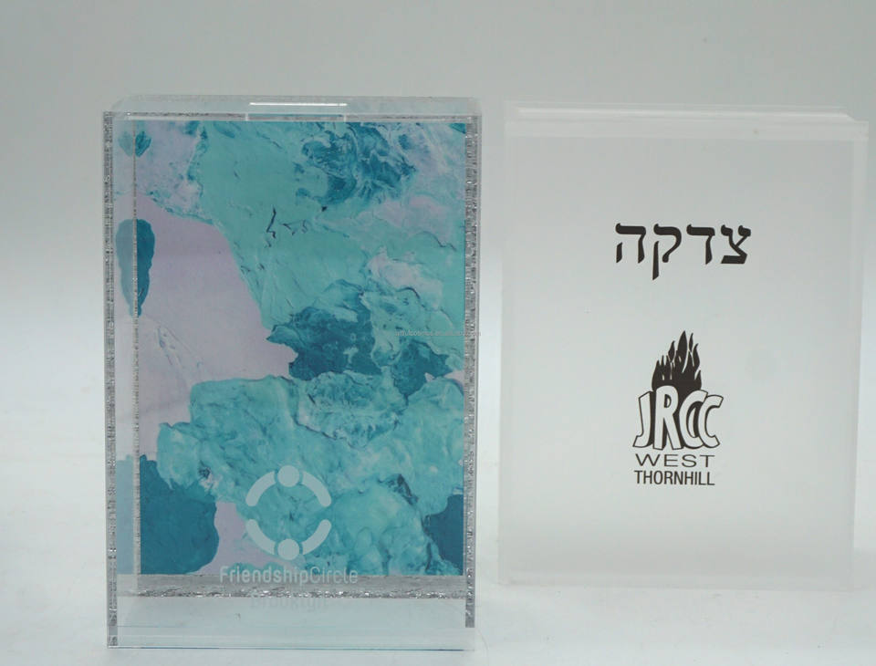 Caja personalizada de Lucite Tzedakah, caja de caridad acrílica, caja de donación judía, Tzedakah grabado personalizado