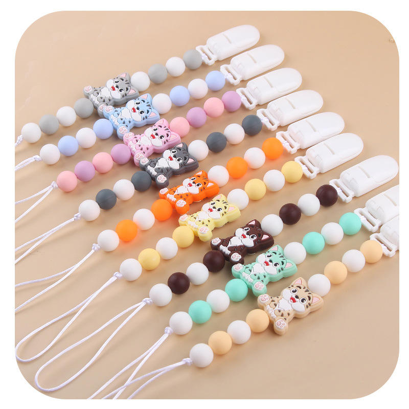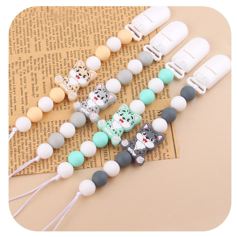 Nombre personalizado soporte para chupete de bebé con patrón de dibujos animados Clip Cadena de silicona cuentas para la dentición pezones Clip Baby Shower regalo