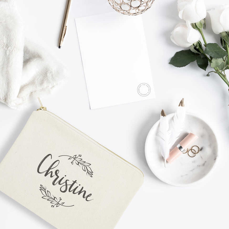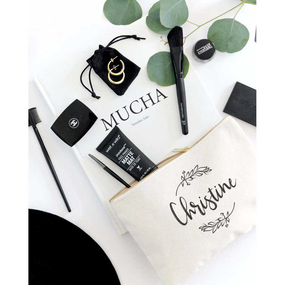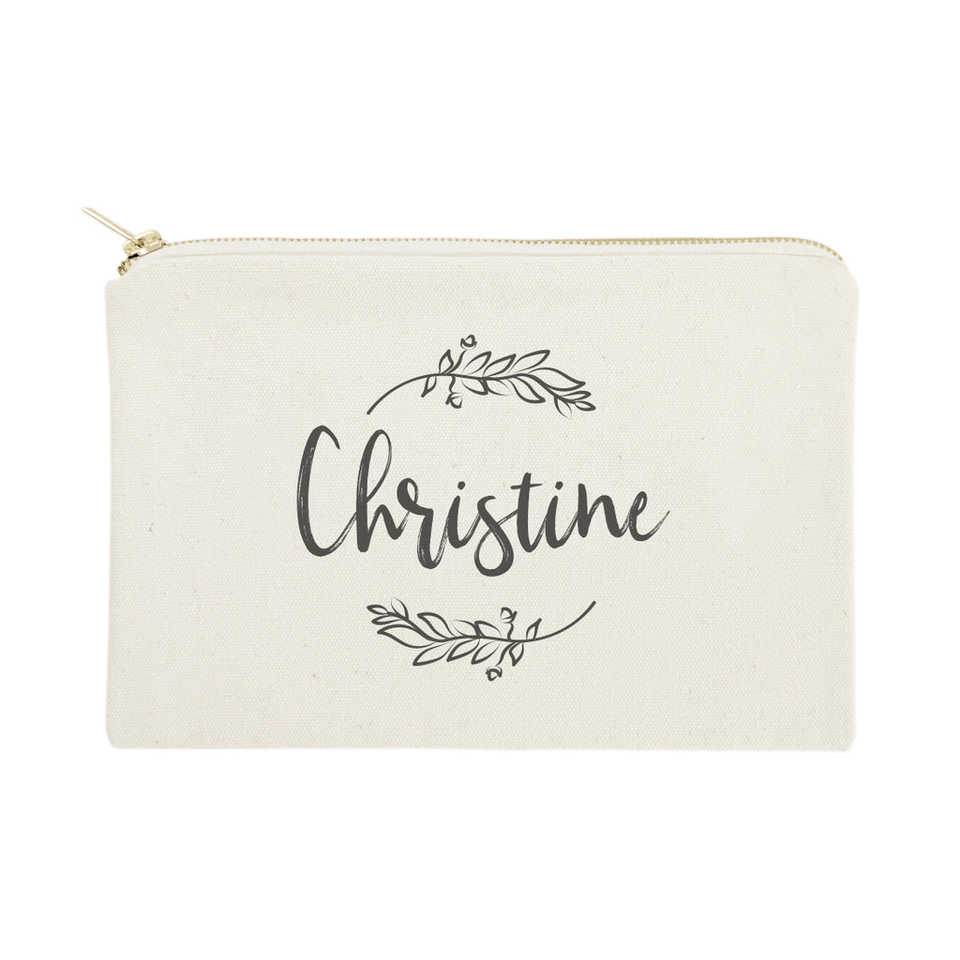 Organizador de Maquillaje Personalizado con Nombre, Bolsa de Cosméticos Portátil de Gran Capacidad para Viaje con Diseño de Enredaderas y Letras Simples