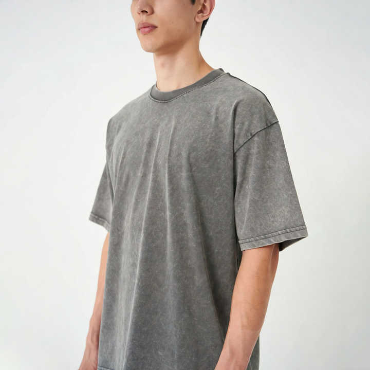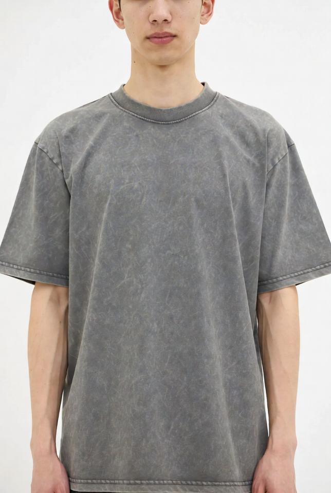 Camiseta Personalizada con Nombre y Logotipo, Estampado Personalizado, Lavado Ácido, Estilo Desgastado, Manga Corta, Cuello Redondo Unisex