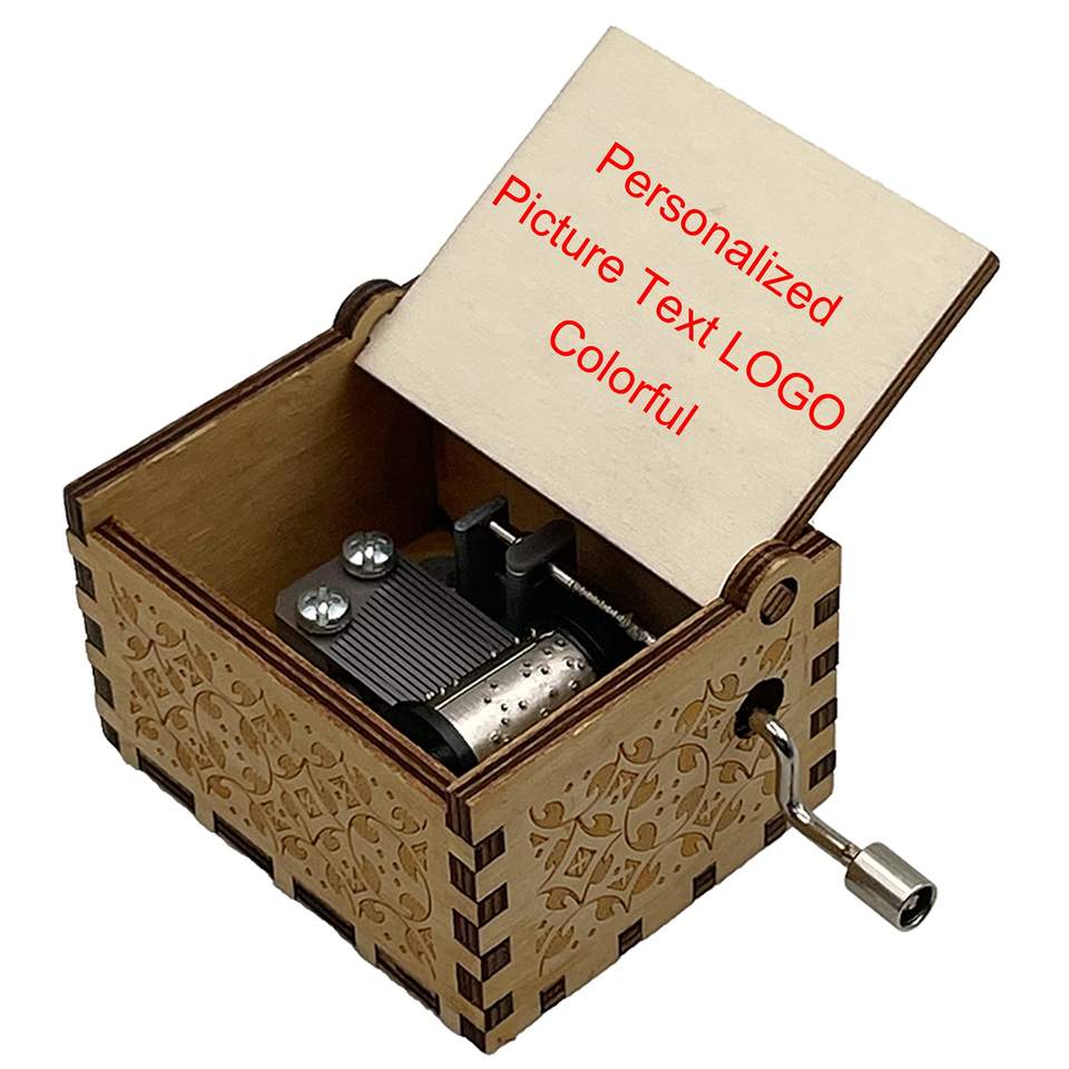 Mini manivela de mano personalizada, caja de música de madera grabada con láser.