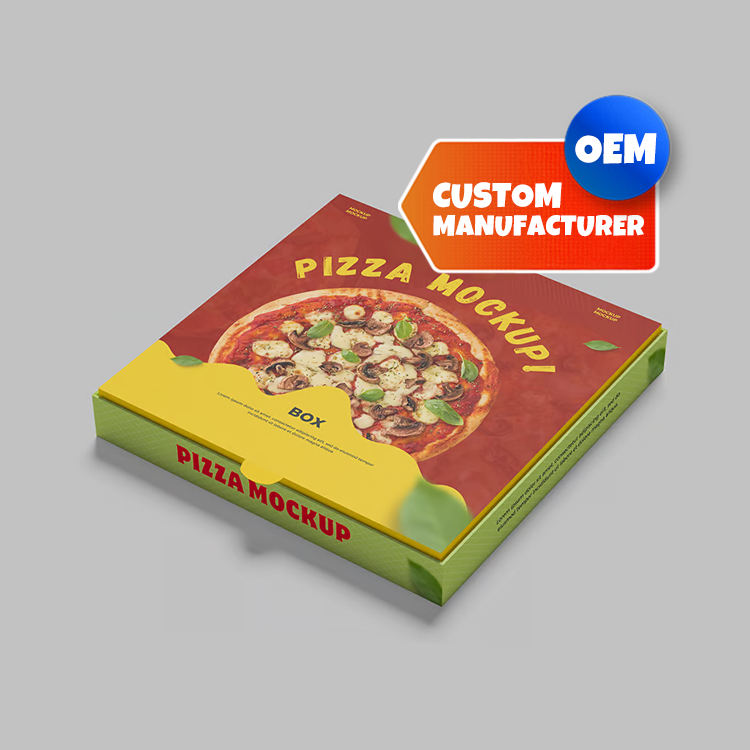 Caja de pizza impresa OEM personalizada con acabado Kraft y diseño gráfico personalizado para uso de marca