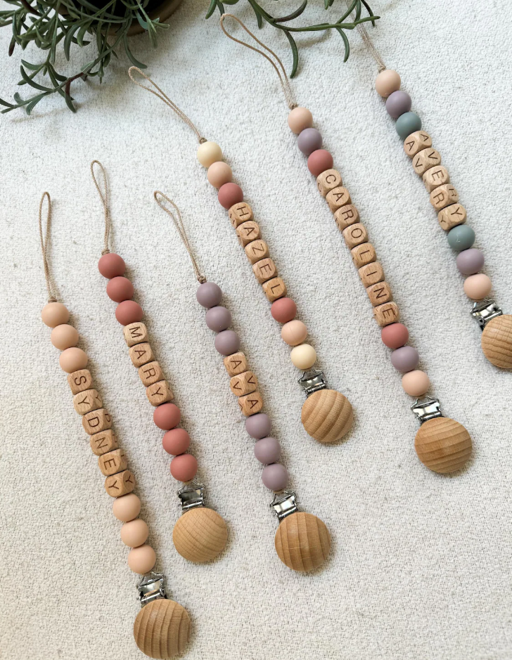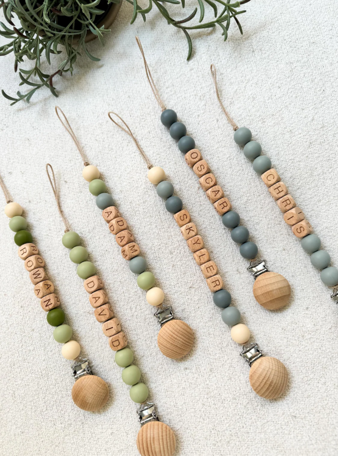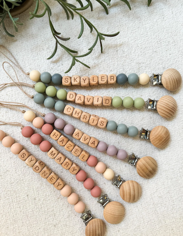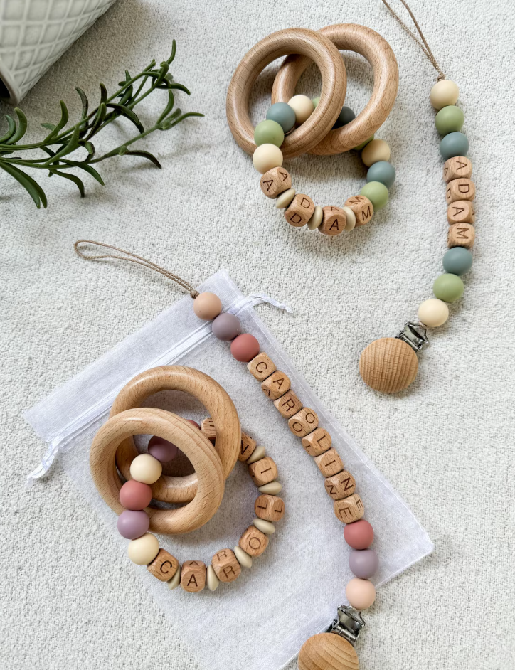 Juego personalizado de clip y sonajero para chupete | Regalo personalizado para Baby Shower