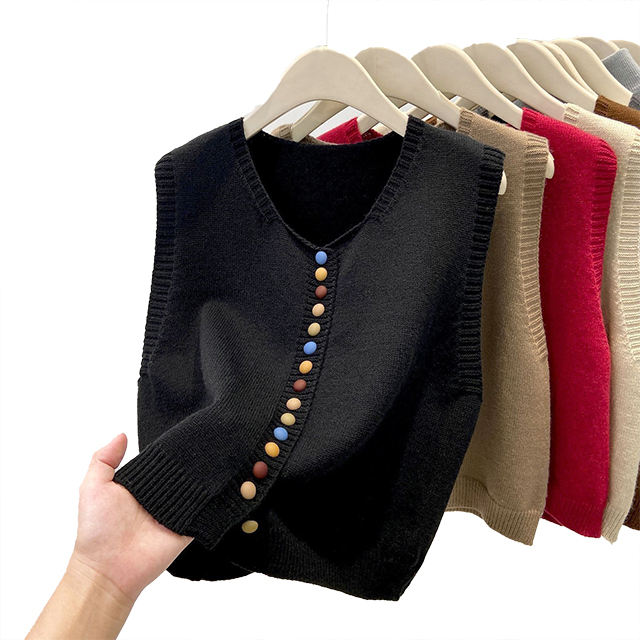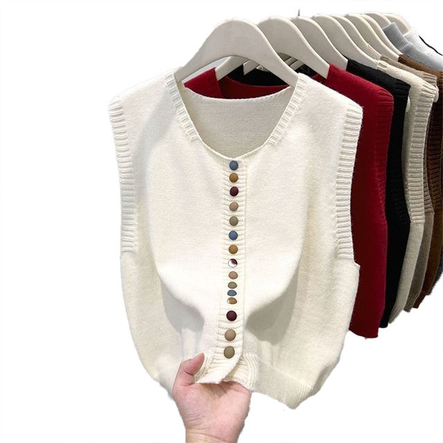 Chaleco de Punto con Botones de Arcoíris Personalizado, Cuello Redondo, para Mujer, Primavera-Otoño, Holgado, Moderno, Suéter en Capas, Top