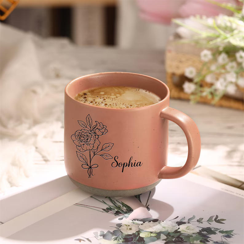 Taza de gres rústica personalizada para mamá Mimi Nana, taza de café grabada personalizada, regalo sentimental para abuela, dama de honor, ella