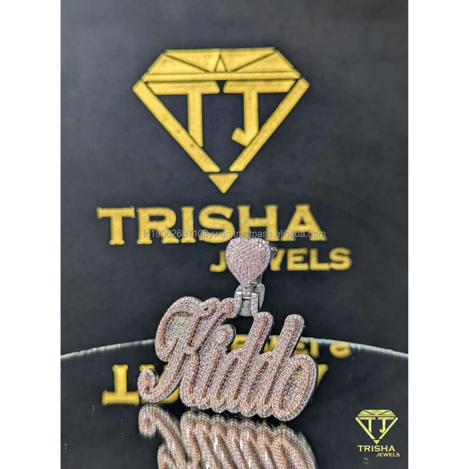 Colgante con Nombre Personalizado, con Incrustaciones de Diamantes Moissanite VVS, Plata 925, Estilo Rapero, Hip Hop, Joyería Personalizada de Trisha Jewels
