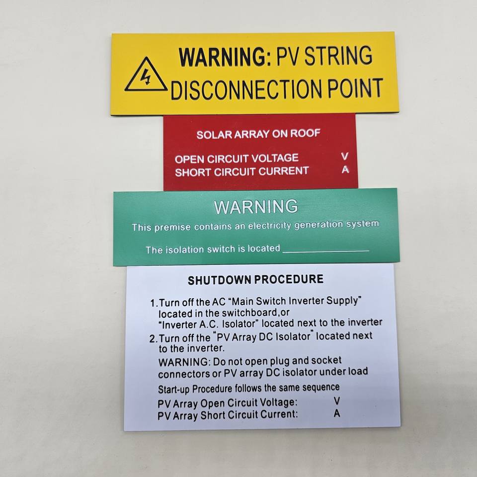 Etiquetas de advertencia de ABS solar personalizadas: pegatinas DE SEGURIDAD DE SISTEMA FOTOVOLTAICO personalizadas para señalización de instalaciones solares