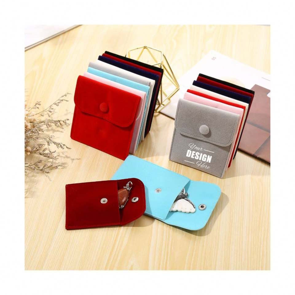 Bolsas de Joyería de Terciopelo Personalizadas - Bolsas de Regalo con Botón a Presión y Logotipo Personalizado para Collares, Anillos y Más