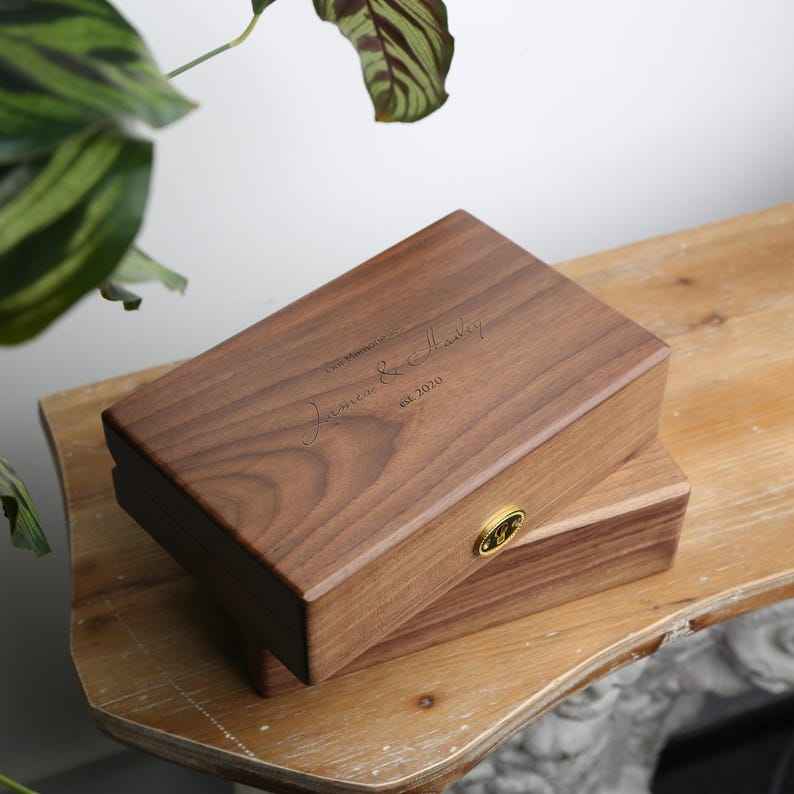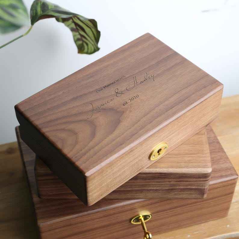 Caja de Recuerdos Personalizada de Nogal, Caja de Recuerdos de Boda Grabada, Regalo de Aniversario para Pareja