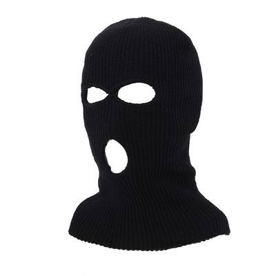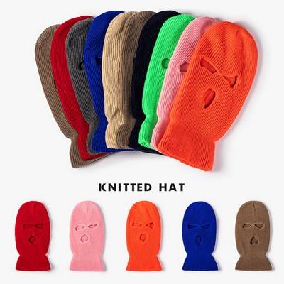 Máscara de lana tejida de tres orificios en colores caramelo, personalizada y cálida, con logo.