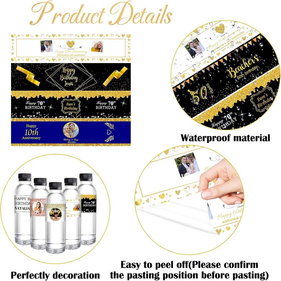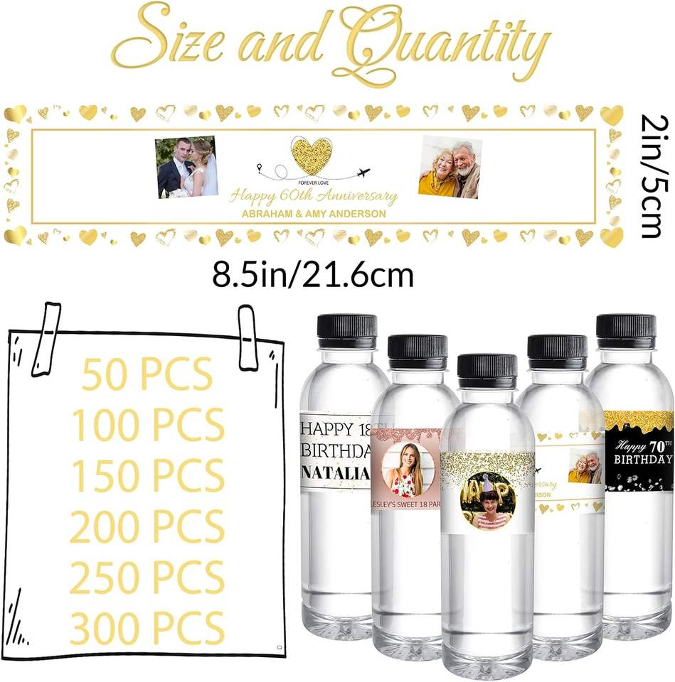 Etiquetas Personalizadas para Botellas de Agua, Pegatinas de Fotos Personalizadas para Botellas de Agua