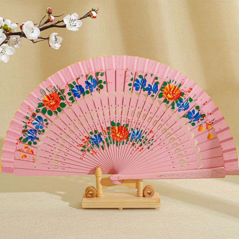 Abanico Plegable de Bambú Ecológico Personalizado para Invitación de Boda, Técnica Pintada, Navidad, Año Nuevo, Halloween