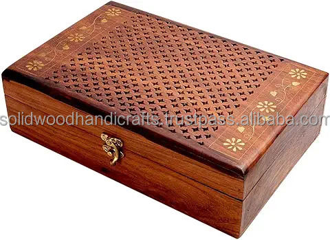 Caja de almacenamiento de joyería de madera personalizada cajas de madera tallada caja de baratija hecha a mano a precio mayorista