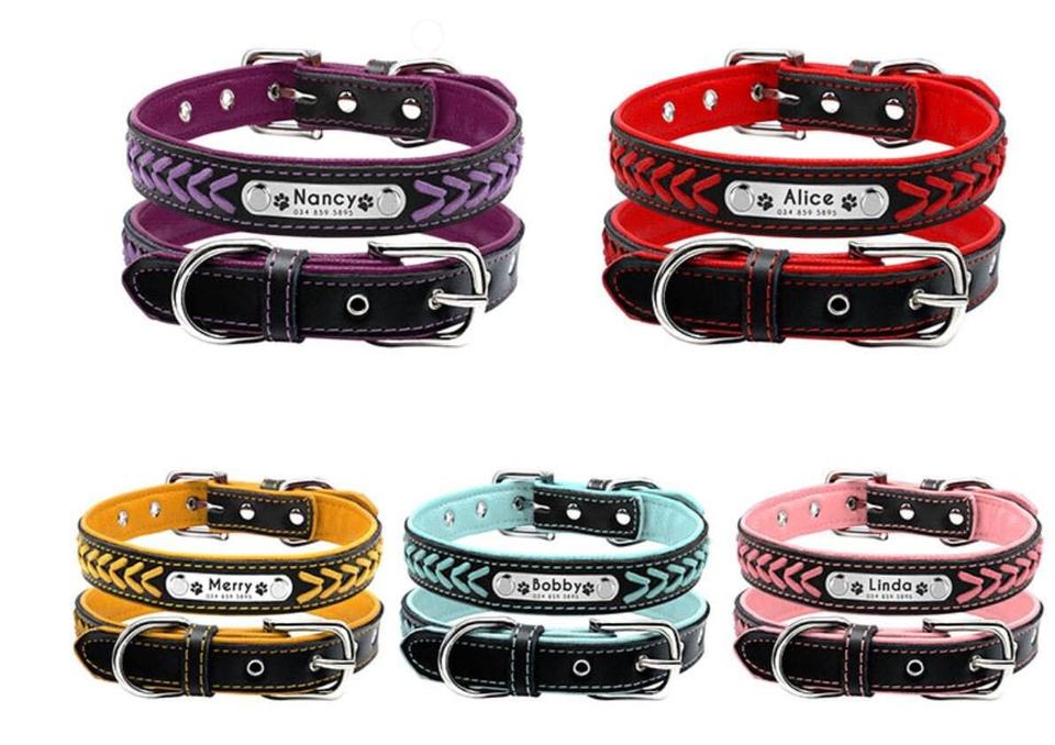Collar de Perro de Cuero PU con Nombre Grabado con Láser Personalizado, Diseño Colorido Trenzado a Mano