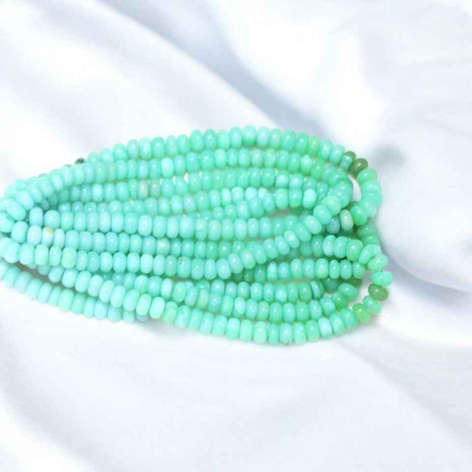 Cuentas de Rondelle lisas de ópalo de caramelo verde peruano, hebra de piedras preciosas sueltas de 7mm a 10mm para fabricación de joyas, suministro al por mayor a granel de India