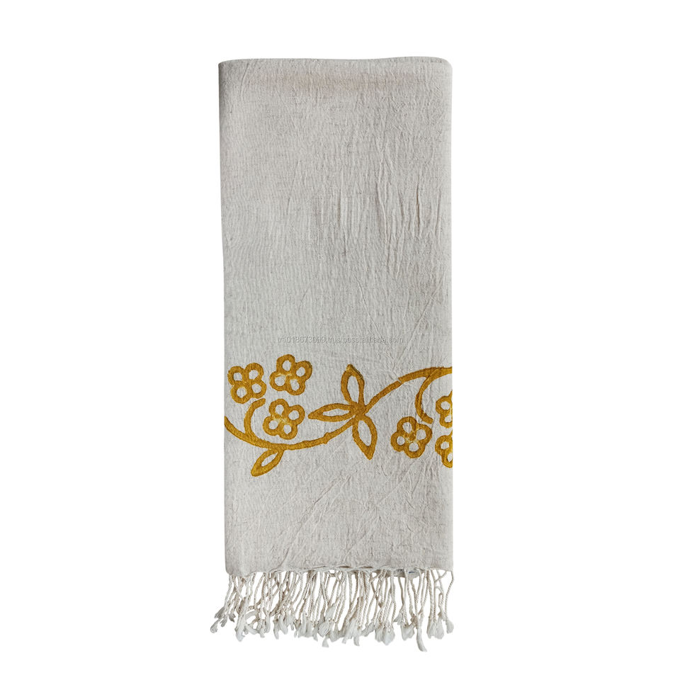 Mashtemal-toallas turcas con estampado de bloque, mezcla de lino y algodón Natural, estampado tradicional de madera, aspecto de muselina con arrugas orgánicas