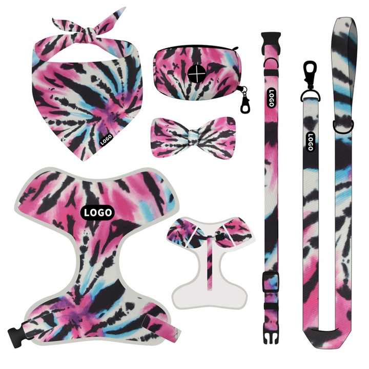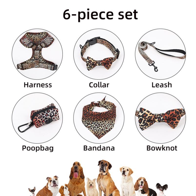 Palabra clave:Collar de arnés de perro personalizado Correa bowknot Poop Bag Bandana conjunto