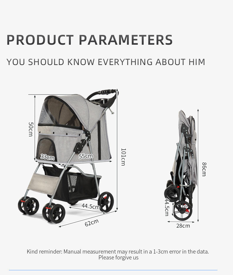 Carrito para Mascotas, Perros y Gatos, Uso en Exteriores, Plegable