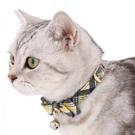 Collar para mascotas con patrón de rejilla ajustable con lazo y campana para gatos pequeños