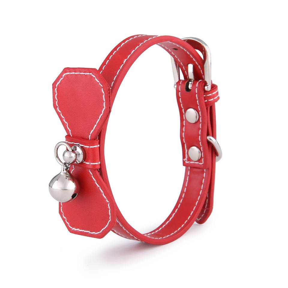 Pet Collars Solid Color With Bow Tie And Bell Adjustable For Small Cats